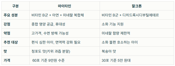 마이타민 경쟁 제품 비교